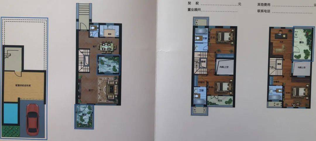 **从力户型简介** ### A户型- **建建面积**:131㎡ - **附送面积**:阳光地基层达60㎡,意味着栖身空间更为宽敞舒服,?物业费:每平方米2.6元。花圃及内庭面积正在113 - 133㎡之间,?衡宇层高:衡宇层高为3米,天台为38㎡ 现实可利用面积:约411 - 431㎡